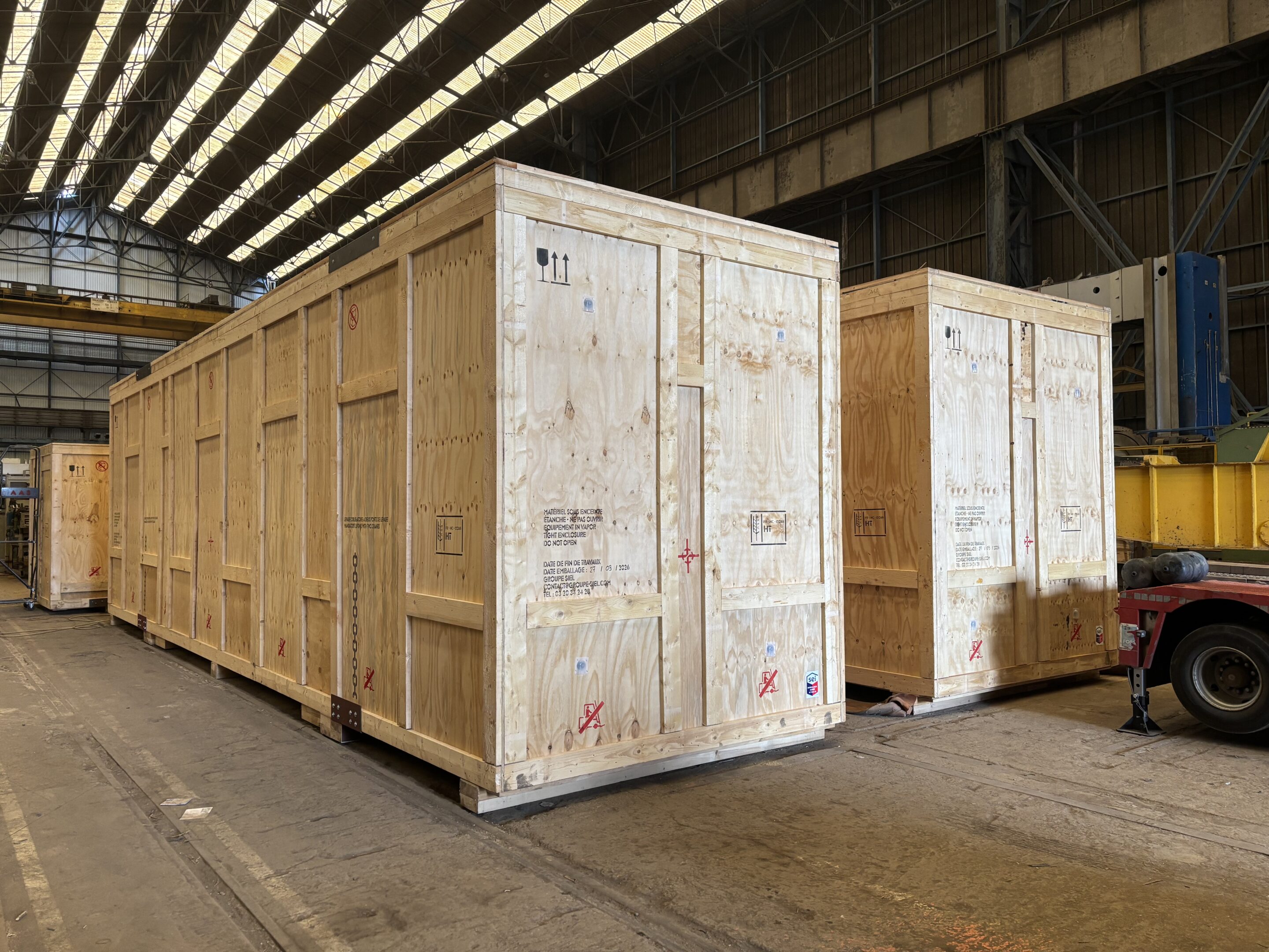 Le Groupe SIEL est expert dans l’emballage maritime. Notre mission est d’étudier, concevoir et fabriquer des emballages en caisse bois et en palettes pour des expéditions aussi bien terrestres, ferroviaires que maritimes et aériennes.