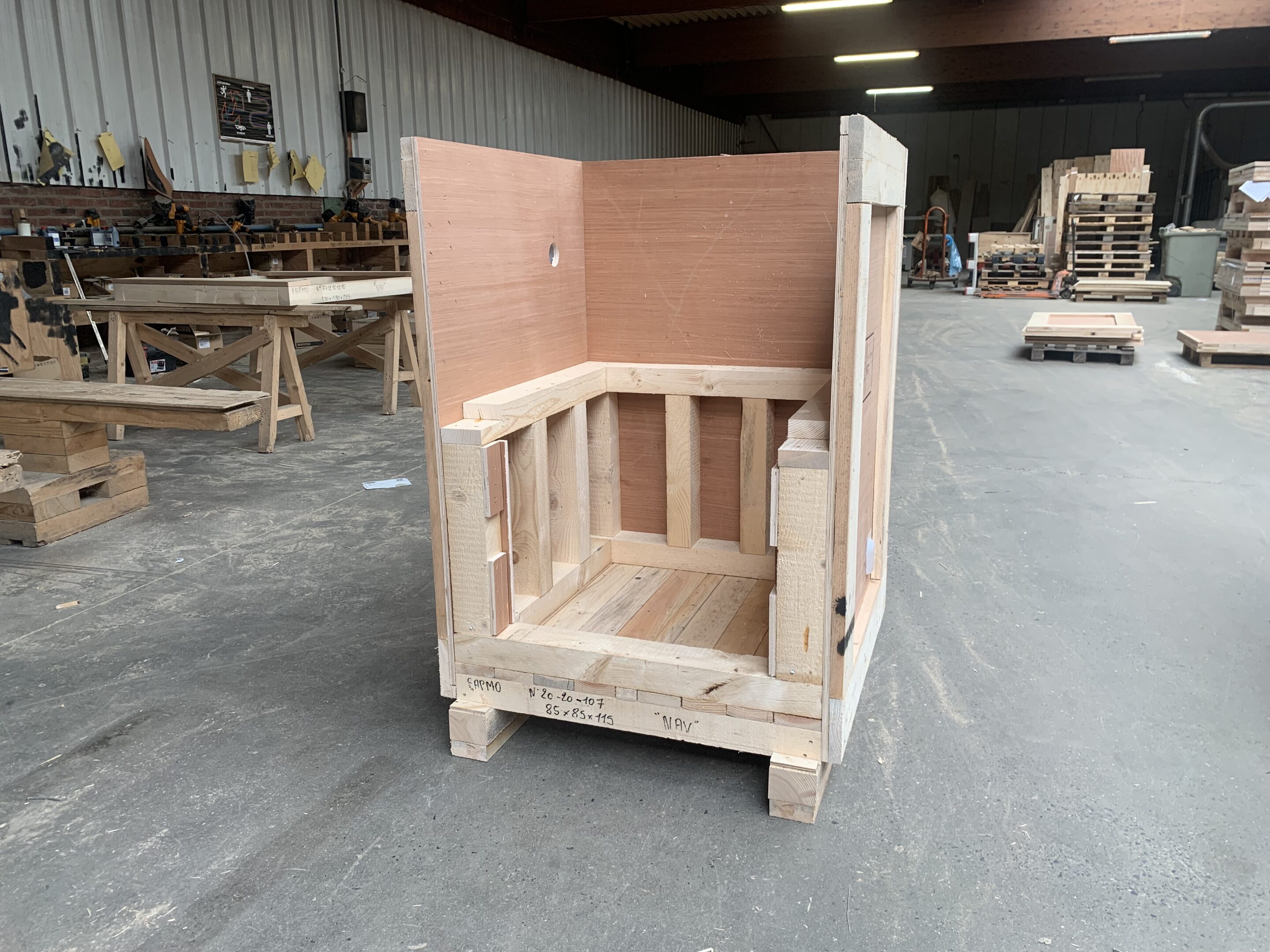 Caisse bois sur mesure – Berceaux et supports bois NIMP15 – Plateaux et palettes NIMP15 – Caisse navette – Housses et protections