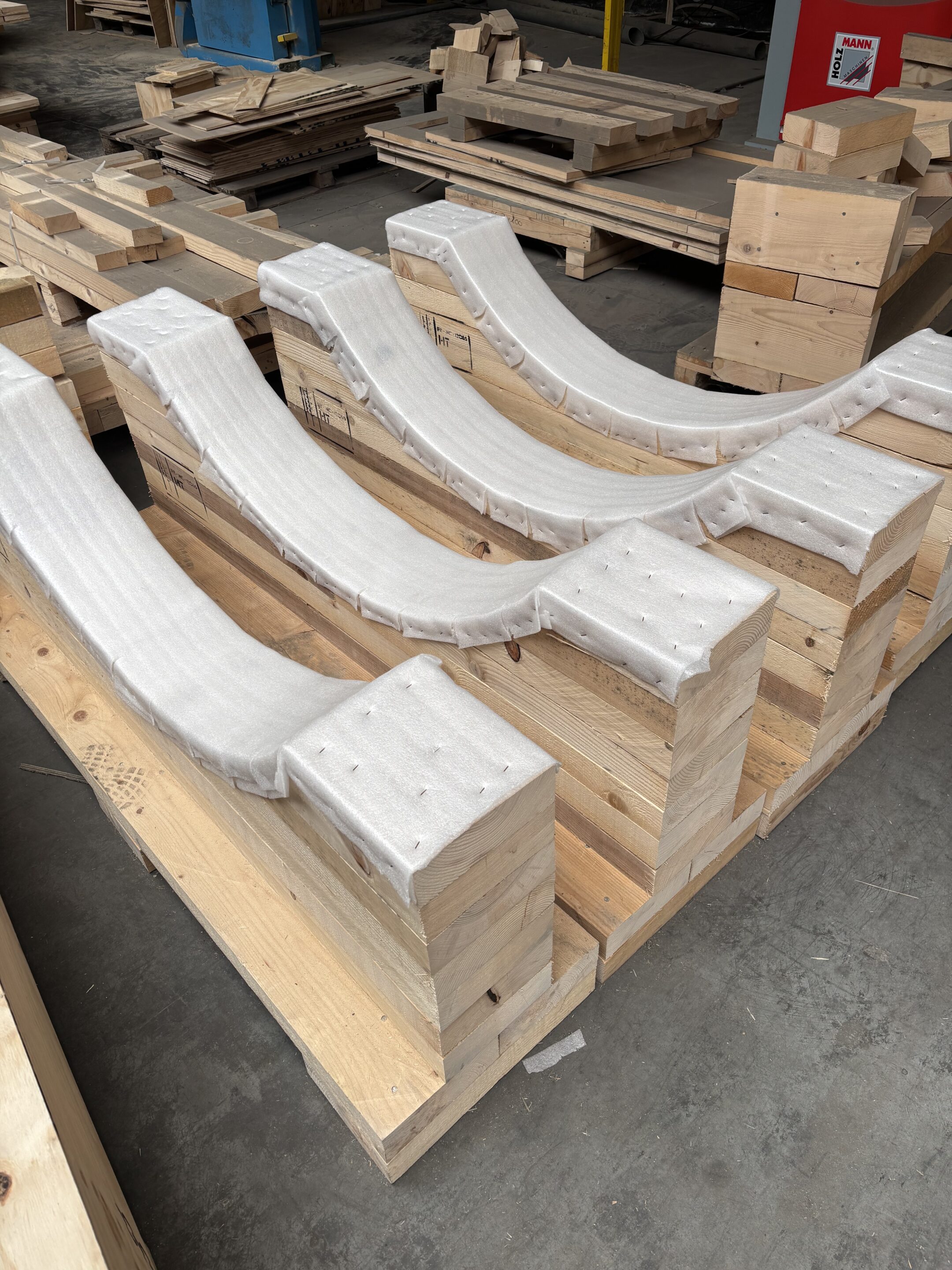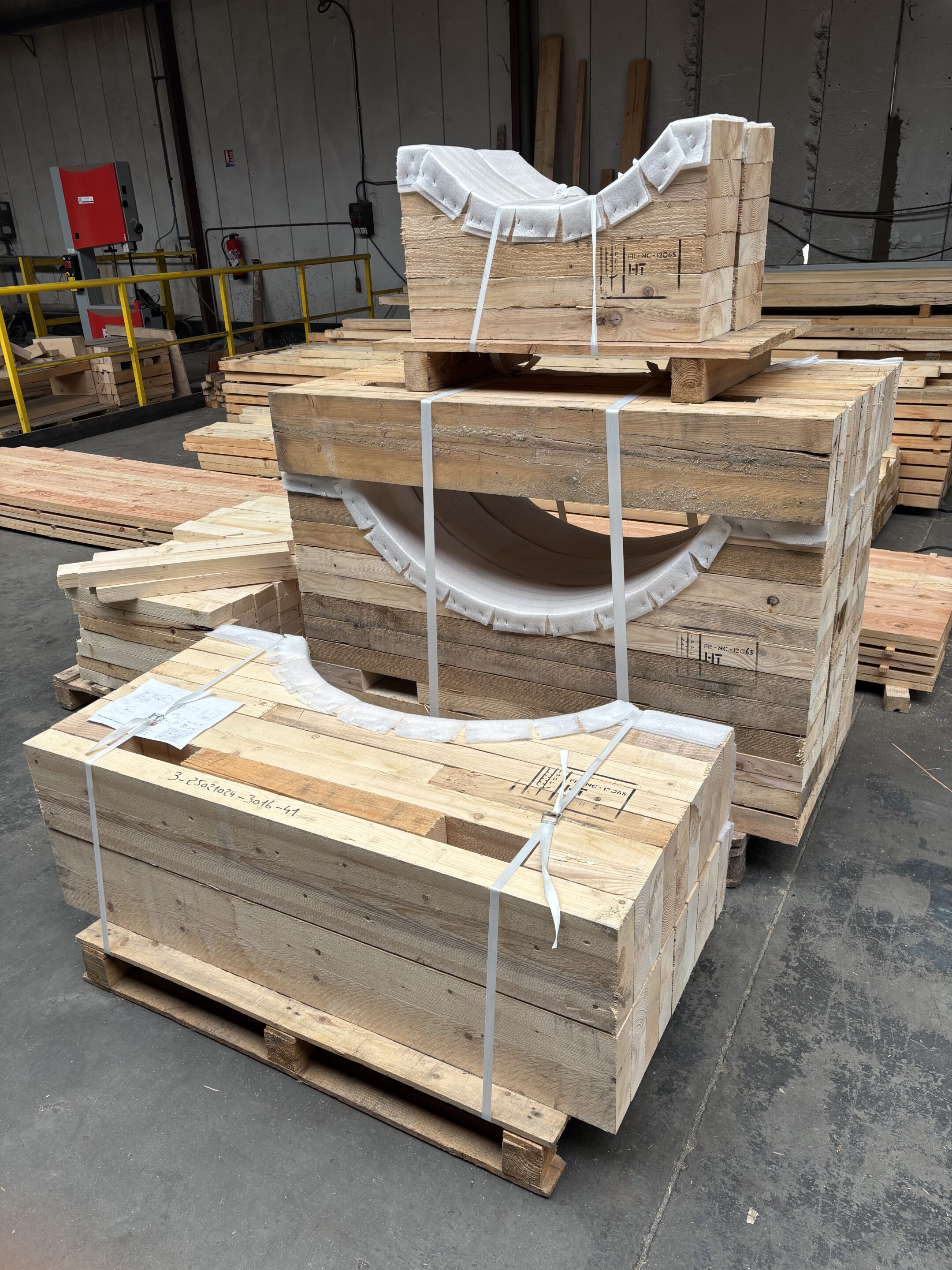 Nos fournitures comprennent des caisses et caissons en bois personnalisés, qui garantissent une protection optimale pour les expéditions. Nous proposons également des palettes et plateaux adaptés à divers types de charges afin de faciliter la manutention et le stockage. Pour les pièces longues ou complexes, nos berceaux et supports assurent une parfaite stabilité et réduisent les risques liés aux chocs ou aux déplacements durant le transport. À cela s’ajoutent des solutions de calage et de protection, telles que des mousses, films plastiques ou coins de protection, ainsi que des accessoires variés comme poignées, ferrures, charnières et marquages spécifiques.